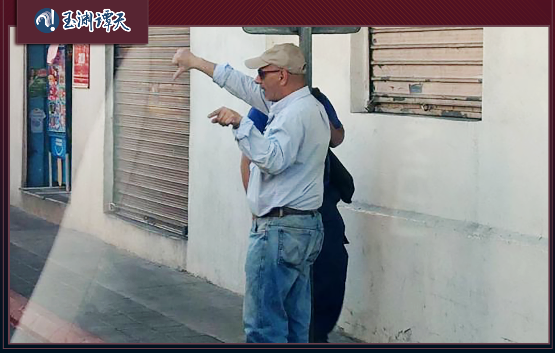 在去下榻酒店的路上,从这位老伯的手势来看,沿街民众对蔡英文的到来,实在谈不上欢迎。