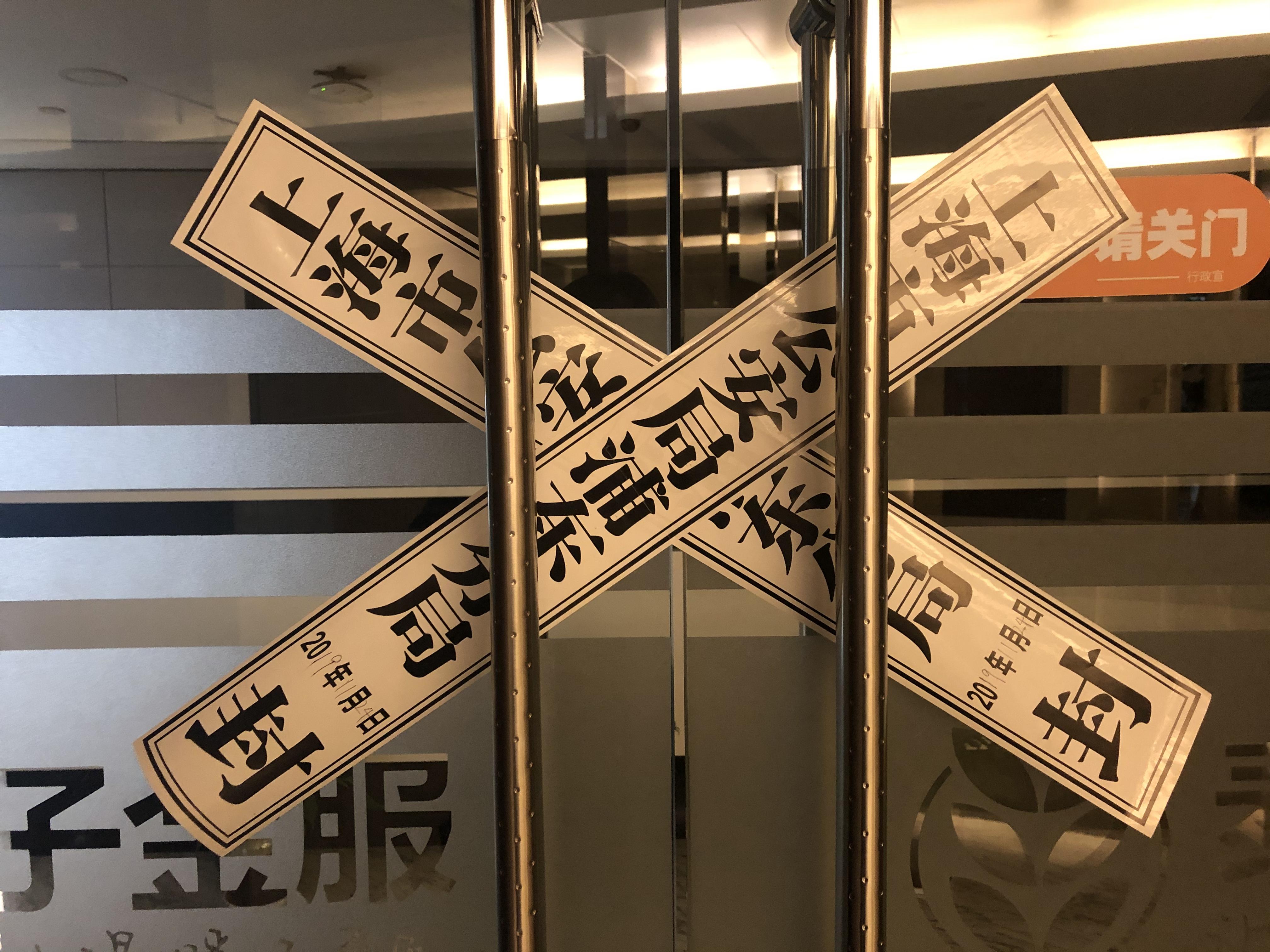 猎云网来到上述楼层,看到办公区门口各有一位保安值守,办公大门紧锁,门上均贴着上海市公安局浦东分局封条,时间是11月24日;现场也没有看到有员工前来上班。
