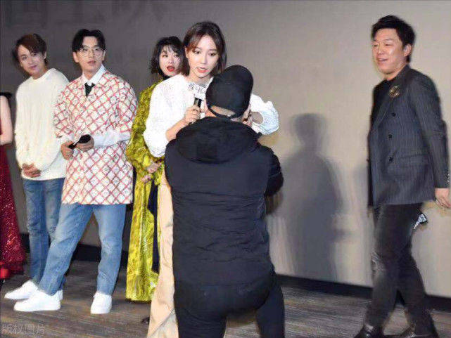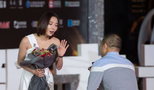 一年后和黄渤、焦俊艳在宣传电影《被光抓走的人》时,一名男子突然跑到了台上,从一只小铁盒里拿出了戒指,做出了跪地求爱的动作。