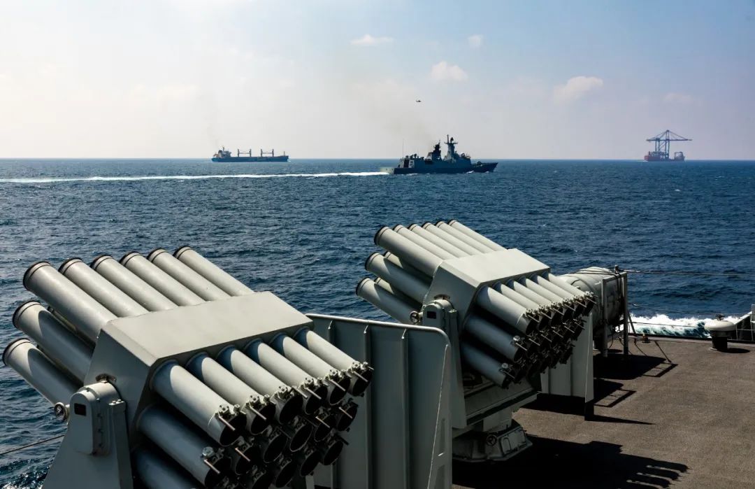“国家利益所至,舰艇航迹必达。”党的二十大报告中明确指出“维护我国公民、法人在海外合法权益”,编队在亚丁湾、索马里海域执行护航任务使命光荣、责任重大。护卫我国商船安全通过高风险海域,编队官兵职责所系、义不容辞!
