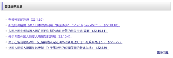 不过,虽然日本驻华大使馆在这则签证信息正文的最后半句里做出了签证业务“早已”恢复正常的表述,但在其官网的“签证”或是其他板块里,日方先前并没有发布过其他关于签证业务“恢复正常”的内容。其 “签证”板块里上一条与签证有关的信息,是2022年10月18日发布的。