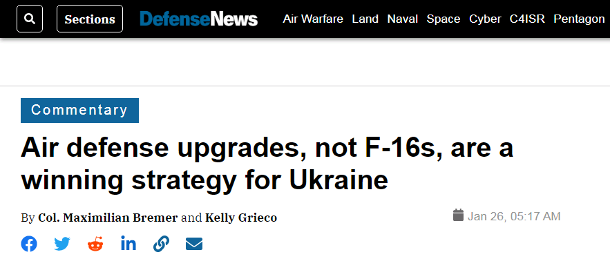 报道称,俄乌冲突的教训是,当代空战更倾向于利用机动的地面防空系统,而不是昂贵的固定翼飞机获得制空权。“乌克兰试图依靠西方援助的先进战斗机获得制空权的任何尝试,都将是一个代价高昂的错误”。