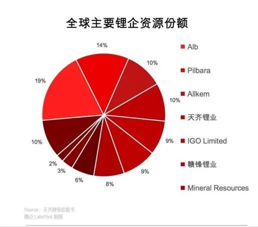 据招股书,全球79%的锂矿资源掌握在雅宝ALB)(美国)、皮尔巴拉(Pilbara)(澳大利亚)、Allkem(澳大利亚)、天齐锂业(中国)、IGO LImited(澳大利亚)、赣锋锂业(中国)和 Mineral Resources(澳大利亚)7 家公司手中。