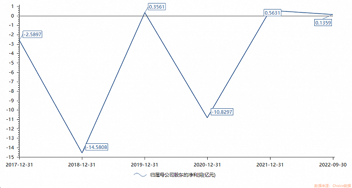 2017年以来,荣联科技维持着赚一年亏一年的态势,但赚少亏多。2018年-2021年,公司分别实现归属于上市公司股东的净利润-14.58亿元、0.36亿元、-10.83亿元、0.56亿元。2022年前三季度,公司实现净利润1359.06万元。