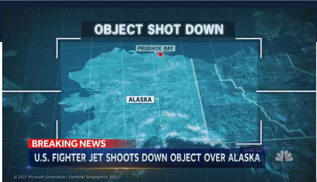美国NBC电视台报道在阿拉斯加上空被击落的物体