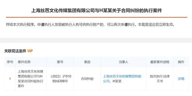 案件流程显示,黄婷婷于2021年起诉丝芭传媒违约,后被丝芭传媒反诉,法院判决双方合约解除,黄婷婷赔偿丝芭传媒违约金350万元。去年12月,黄婷婷被强制执行;今年2月,黄婷婷被列为失信被执行人并被限制高消费。