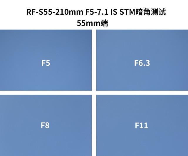 接下来,我们先来看一下这枚镜头的分辨率表现如何。测试时使用光圈优先模式,感光度设定为ISO 100,使用RAW+JPEG格式记录,光圈逐级变化。最后100%放大并截取画面中心和边缘的画面进行对比,分别测试55mm端和210mm端的分辨率表现。