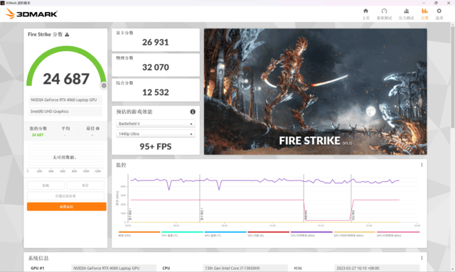 然后是Fire Strike模式下,4060跑分26931分,3060只有21256。