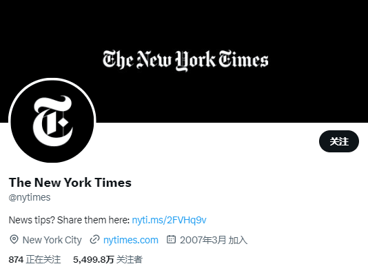 《纽约时报》推特账号的认证已被取消。